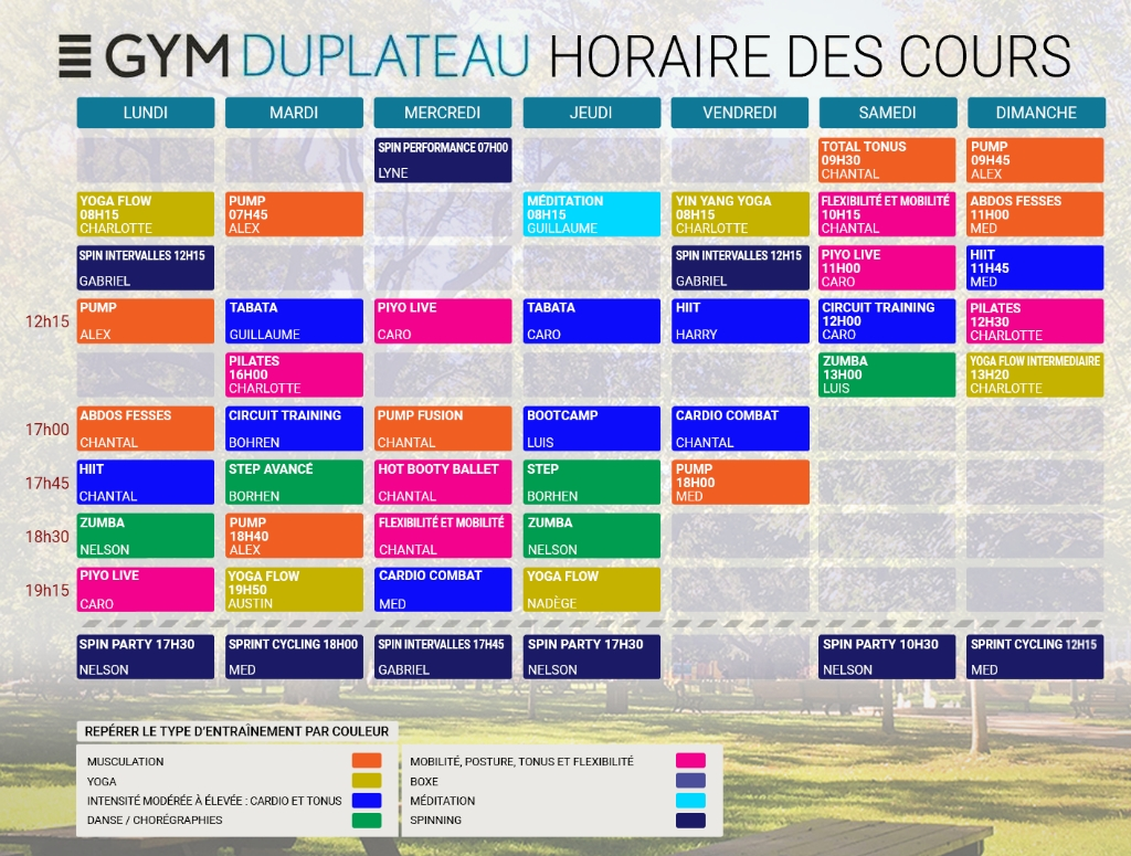 Note that the grid is given as an indication, the Gym reserves the right to any change according to the imperatives imposed on it.